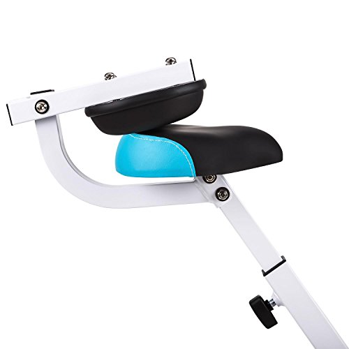 The bike has 8 levels of magnetic tension adjustment. There’s a convenient knob that allows you to quickly change the difficulty level as you desire. In addition, the thick large AirSoft seat offers you extra comfort and is adjustable to fit 5′ 2″ to 6′ 3″ (1,58m bis 1,92m) user height. This foldable bike has a precision balanced flywheel designed to provide adequate support and balance to the user. The flywheel weight (lbs) makes the gym equipment noiseless and smooth in usage. You can easily use workout while watching TV or listening to music.